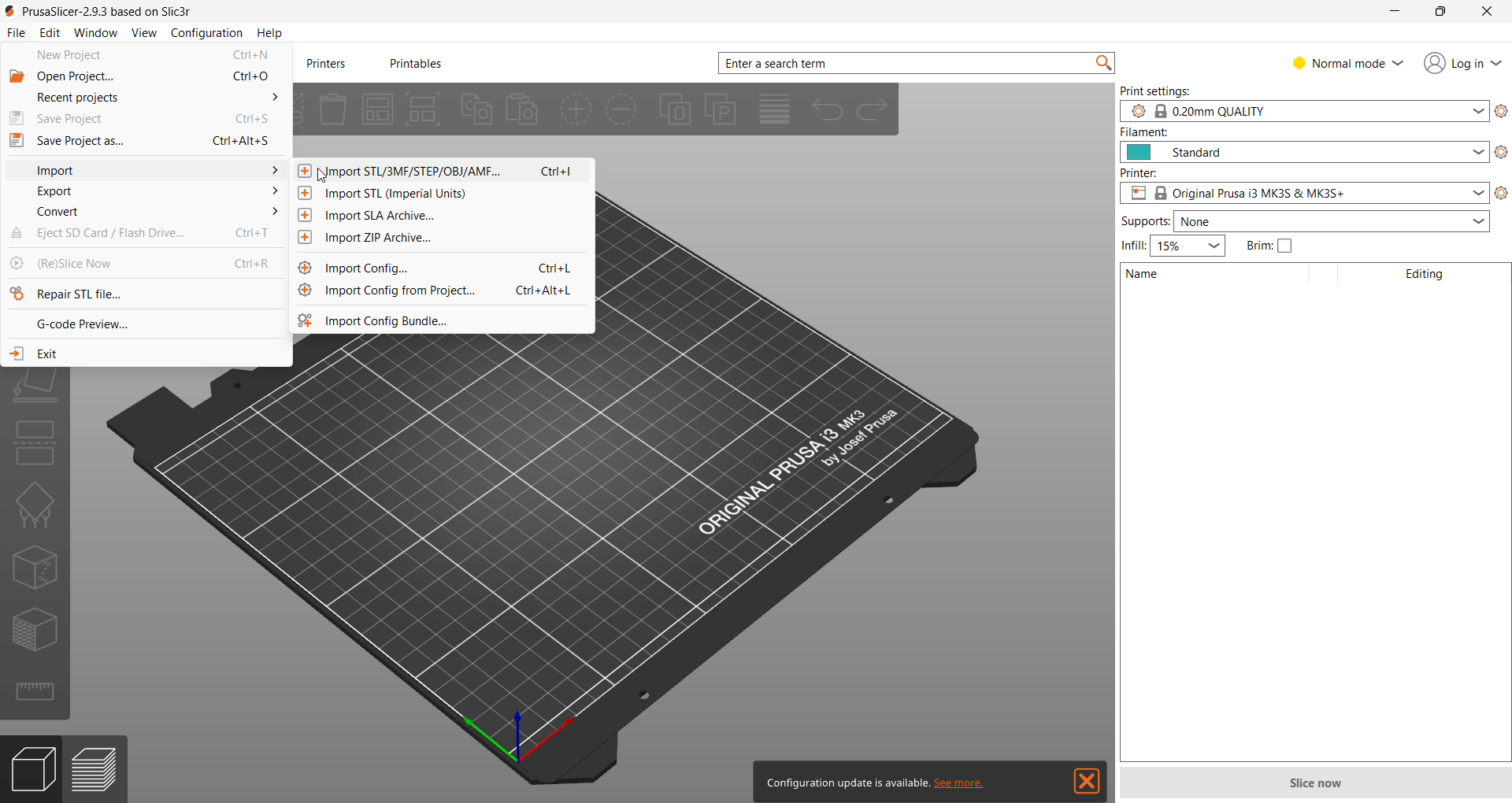 Open PrusaSlicer and go to File → Import → Import STL to bring in the vase model.