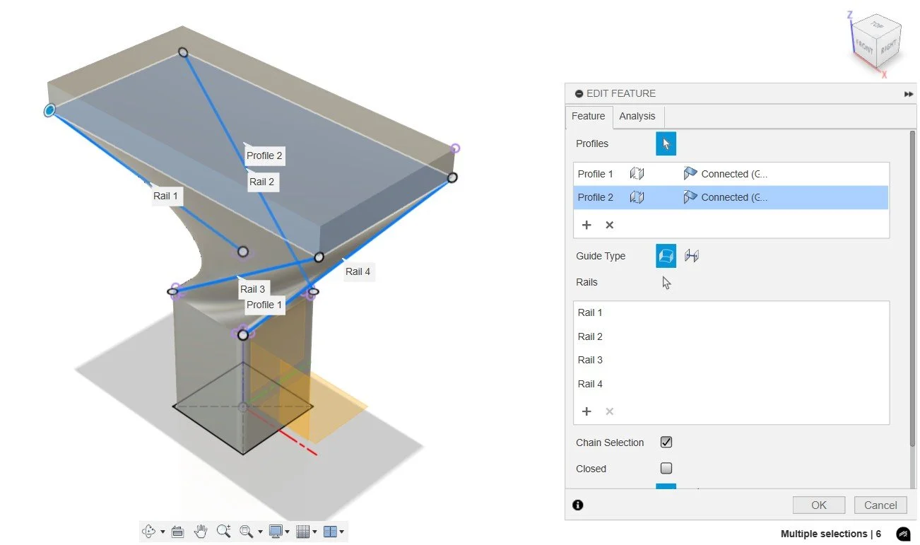 With the profiles and rails ready, use the Loft tool to connect the shapes. Adding rails introduces a twist to the design. Inspect the model from different angles to confirm everything looks right.